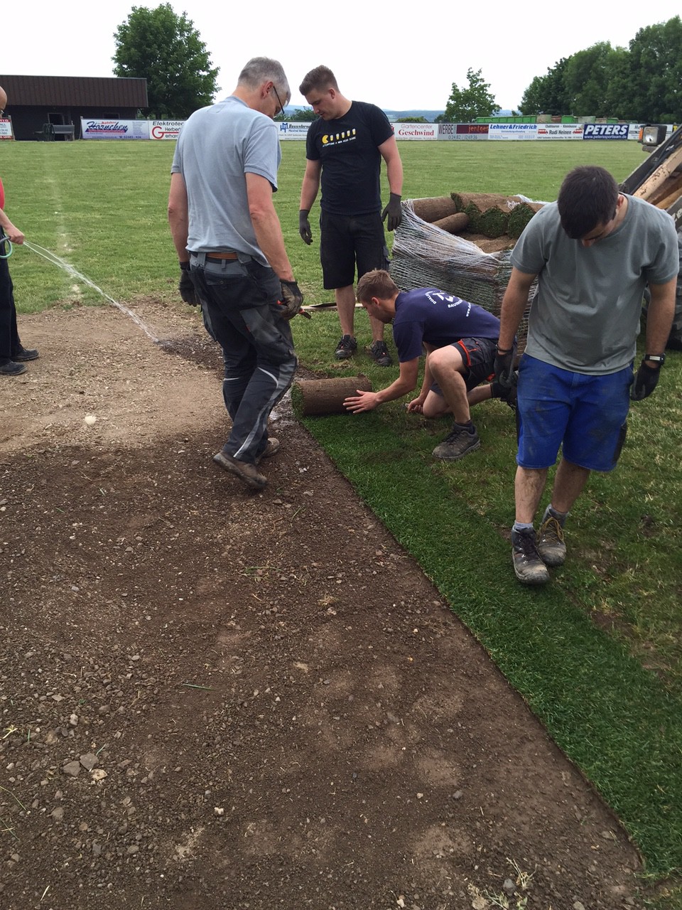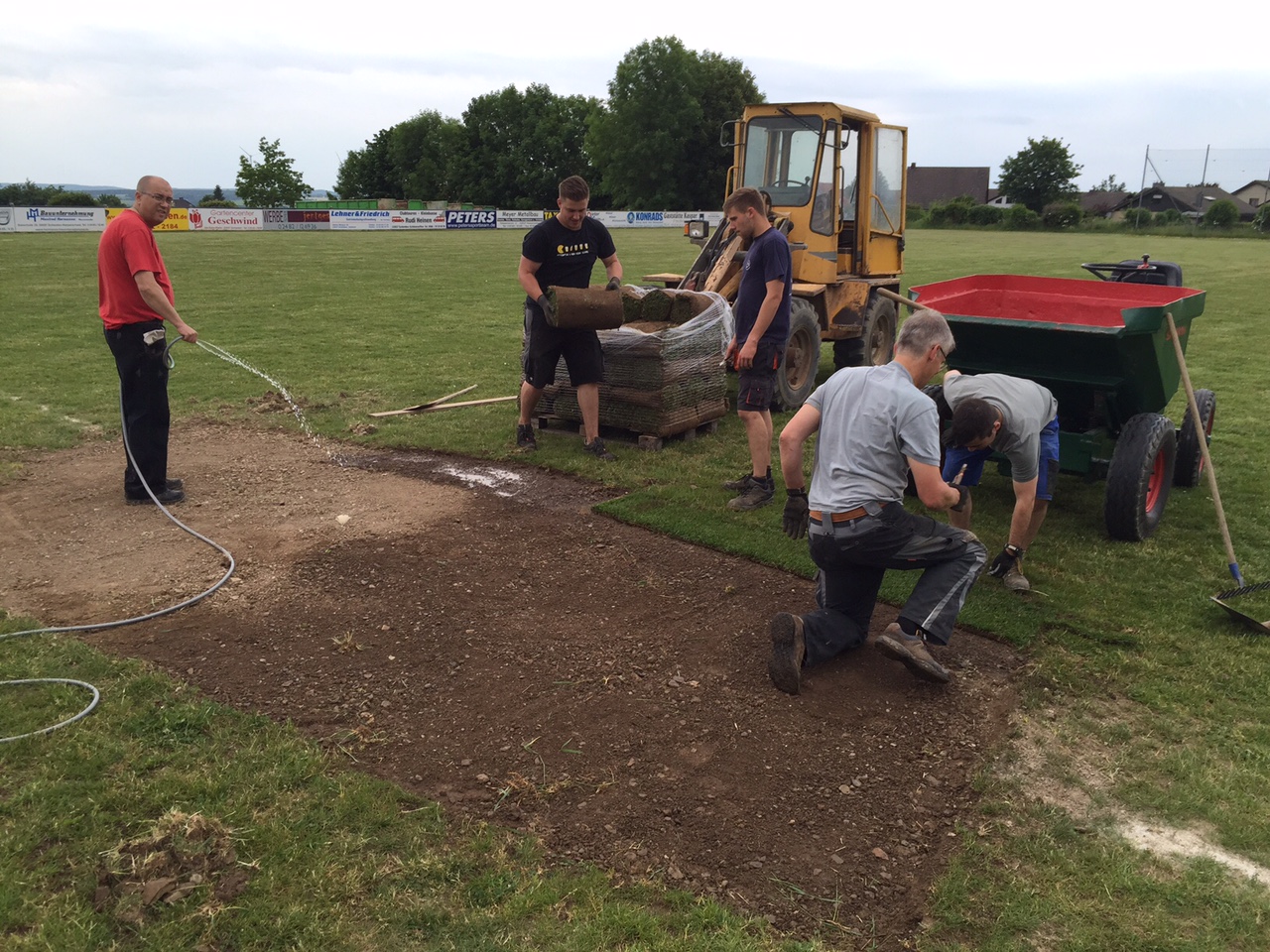 Wir hoffen, dass alles schnell anwächst und unser Sportplatz schon bald wieder bespielbar ist!